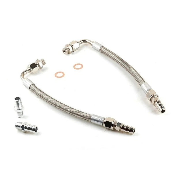 -Universal DIY Turbo Water Line Kit 9.4" 6AN 3/8" 90Deg-3/8" Barb PTFE Braided Stainless Steel Teflon Hose